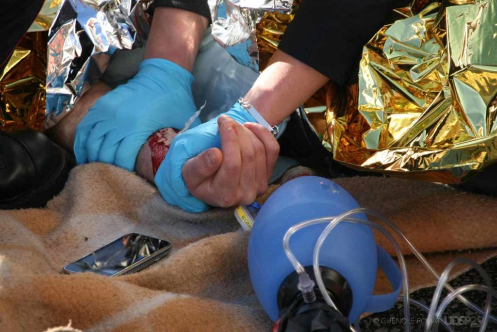 - selon demandes spécifiques (examen de la victime, position d’attente, hémorragie, plaies, brûlures, bouche à bouche et massage cardiaque, utilisation DAE, immobilisations, etc.)